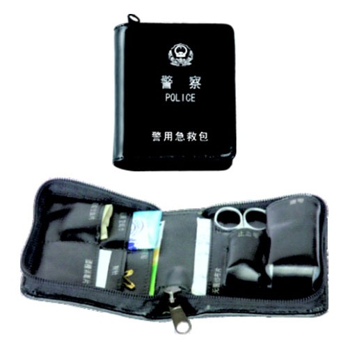 急救包严格要求《GA891-2010公安单警装备警用急救包》标准制造生产。急救包由包体、内装药品和器械组成。包体采用移膜皮革制成。包内装有硝酸甘油片、云南白药创口贴、橡胶止血带、无菌纱布片、带垫急救绷带、口对口呼吸膜、酒精消毒片、抗菌湿纸巾、小剪刀、别针等药品及器械。警用急救包是对公安人员在处理突发事件时,警员或群众一旦受伤能及时对伤员实施进行紧急止血,包扎等所采取的一种急救措施,为伤员送往医院抢救奠定良好基础。